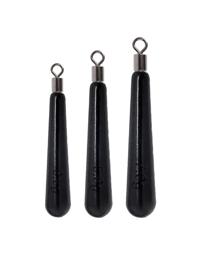 Doskonale wykonane ciężarki wolframowe typu stick w kolorze matowej czerni, wytworzone z wolframu o wysokiej (97%) czystości. Ciężarek typu stick doskonale sprawdzi się w metodach Jig-Rig/Jika Rig, Drop-Shot czy też boczny trok.